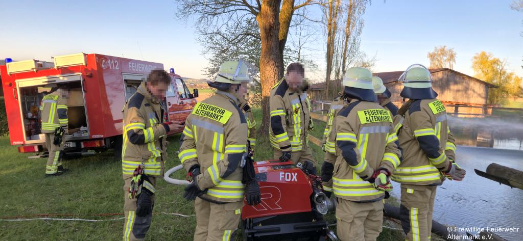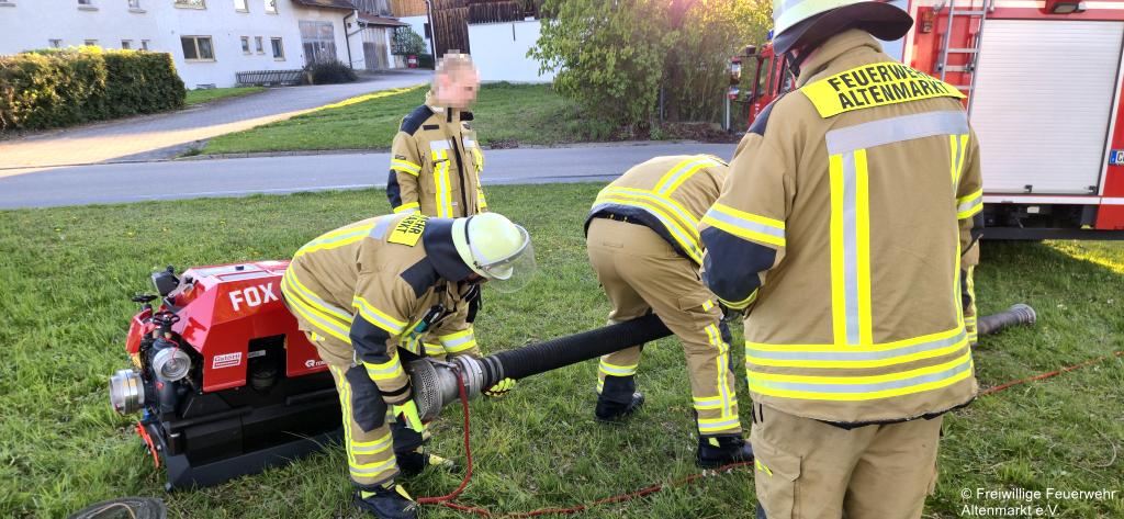 Am vergangenen Mittwoch übten wir mit unserer neuen Rosenbauer Fox Tragkraftspritze am Löschweiher in Brunn.