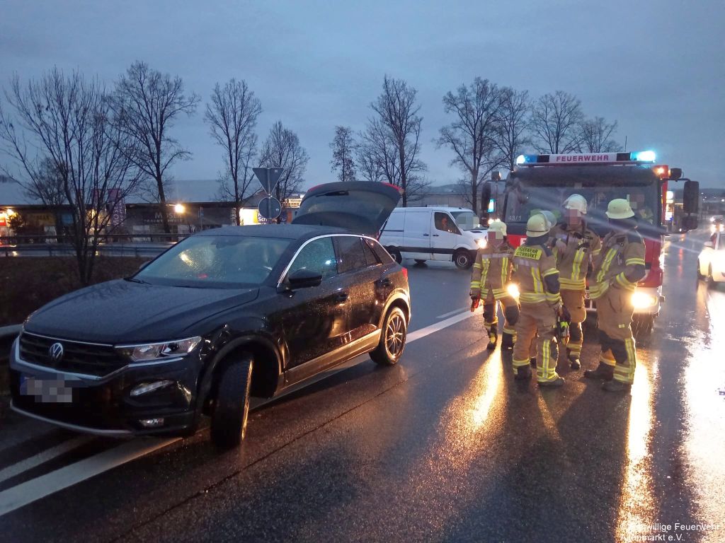Heute früh werden wir zusammen mit der FFW Cham und FFW Traitsching zu einem Verkehrsunfall am Kreisverkehr Cham-Süd alarmiert.